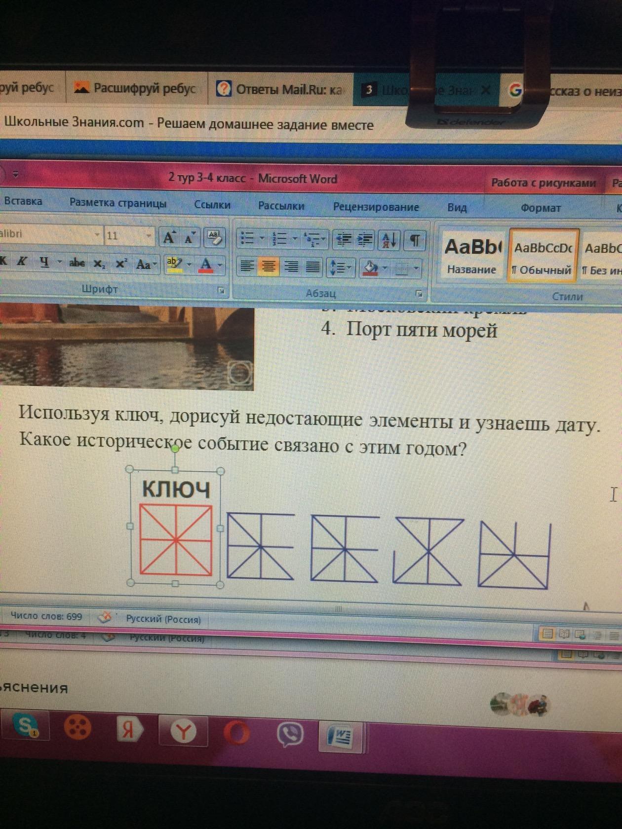 Используя ключ, дорисуй недостающие элементы и узнаешь дату.
