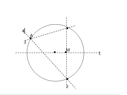 Я думаю так: 1 линия: точки ОиМ определяют единственную прямую. 2 линия: если радиус делит пополам хорду, то он перпендикулярен этой хорде. 3 линия: через две точки АиВ проходит единственная прямая. 4линия: точки АиС определяют единственную прямую.