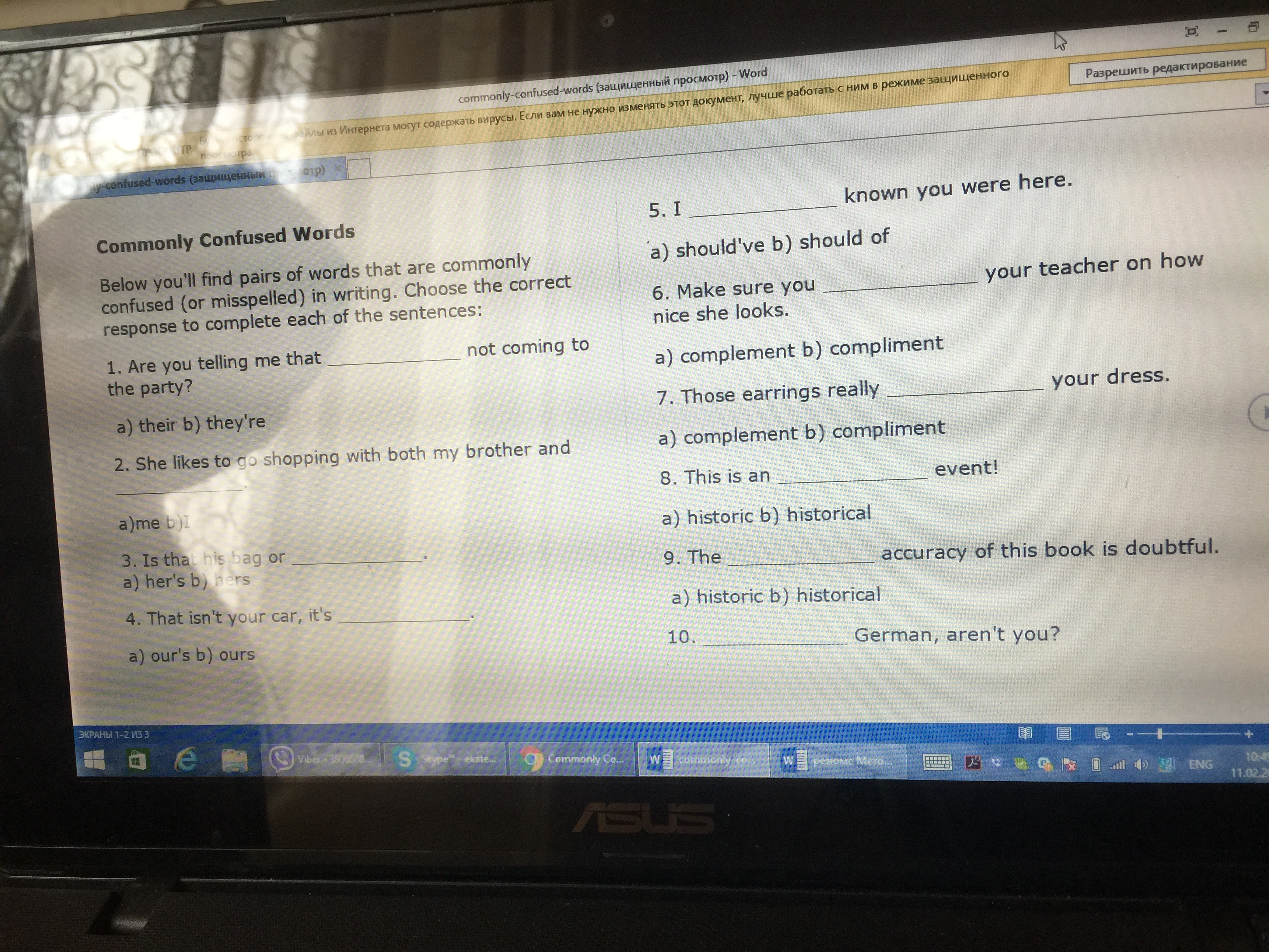 1 b 2a 3b 4b 5a 6b 7a 8a 9b 10 you are (you`re)