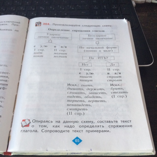 Помогите составить текст о том как надо определять спряжение глагола опираясь на данную схему