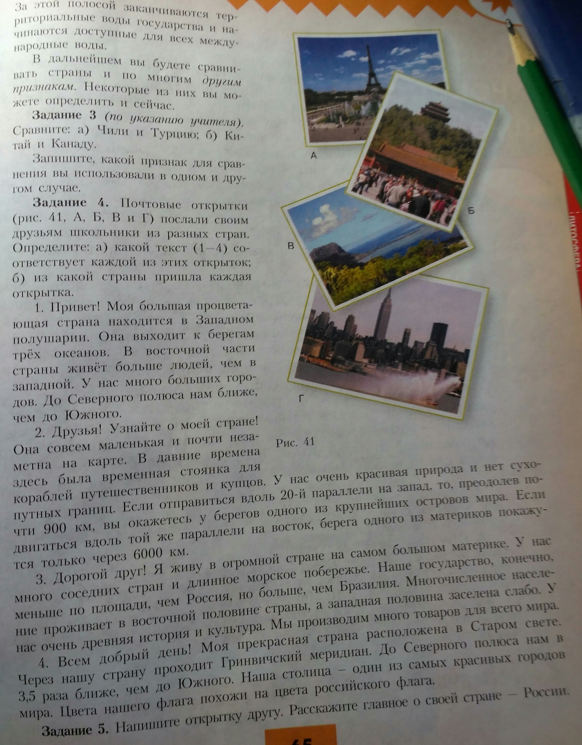 "В дальнейшем вы будете сравнивать страны и по другим признакам". То есть здесь нужны признаки сравнения, которые будут изучаться в более старших классах.