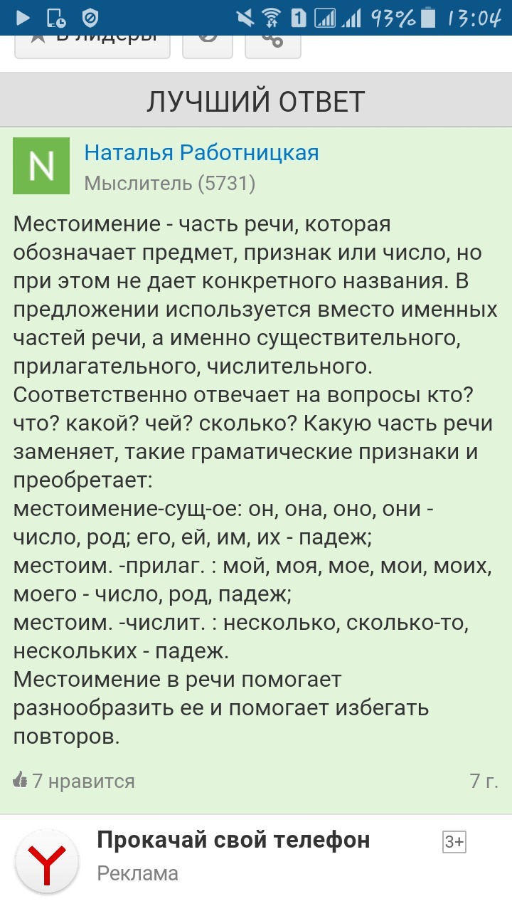 Сочинение на тему "Местоимения - существительные, местоимения - прилагательные и местоимения - числительные. Сходство и различие, роль в речи."