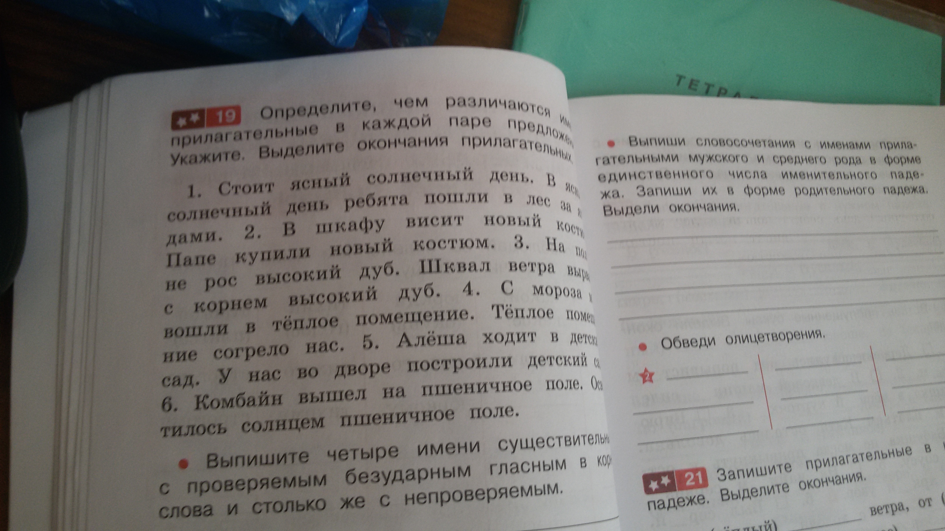 Определите Чем различаются имена прилагательные в каждой паре предложений укажи Выдели окончания прилагательных. выпиши 4 имени сущ с проверочным безударным гласным в корне слова и столько же с непроверяемым