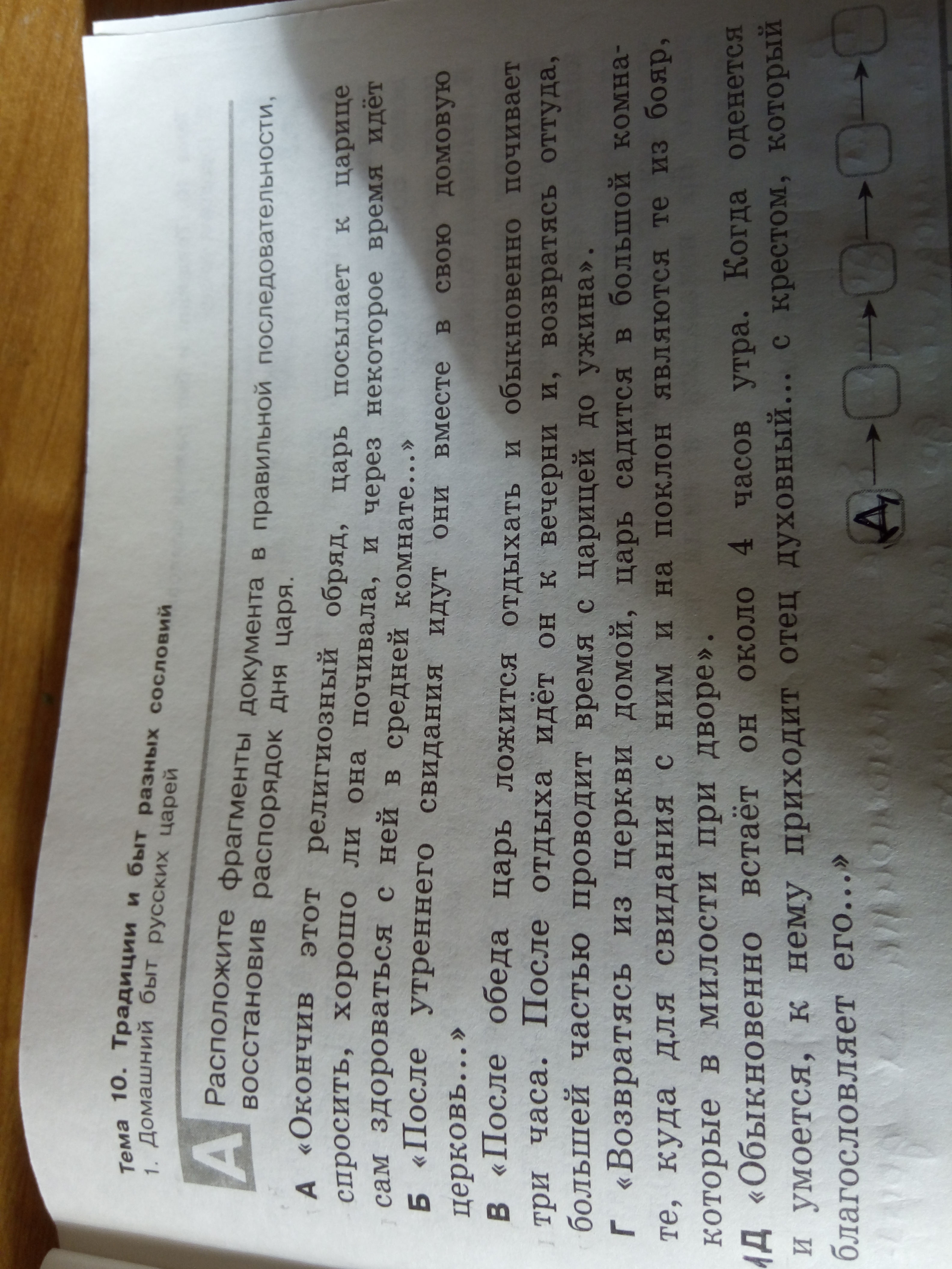 Расположите фрагменты документа в правильной последовательности, восстановив распорядок дня царя.