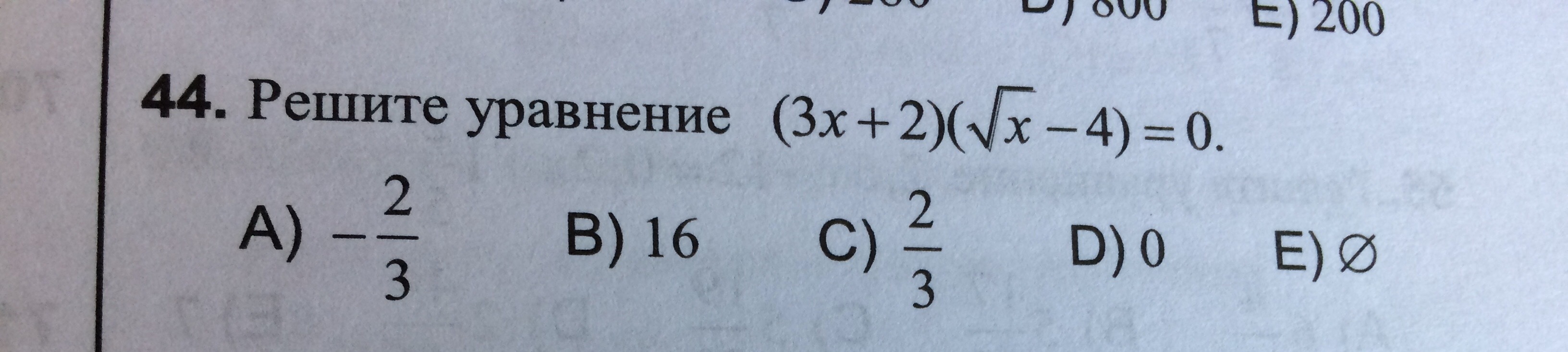произведение равно 0 , в том случае . если любой из множителей равен 0. (3x+2)*(x^1/2-4)=0; 3x+2=0, 3x=-2, x=(-2)/3; x^1/2-4=0, x^1/2=4, x=16. Ответ: x=-2/3, x=16.