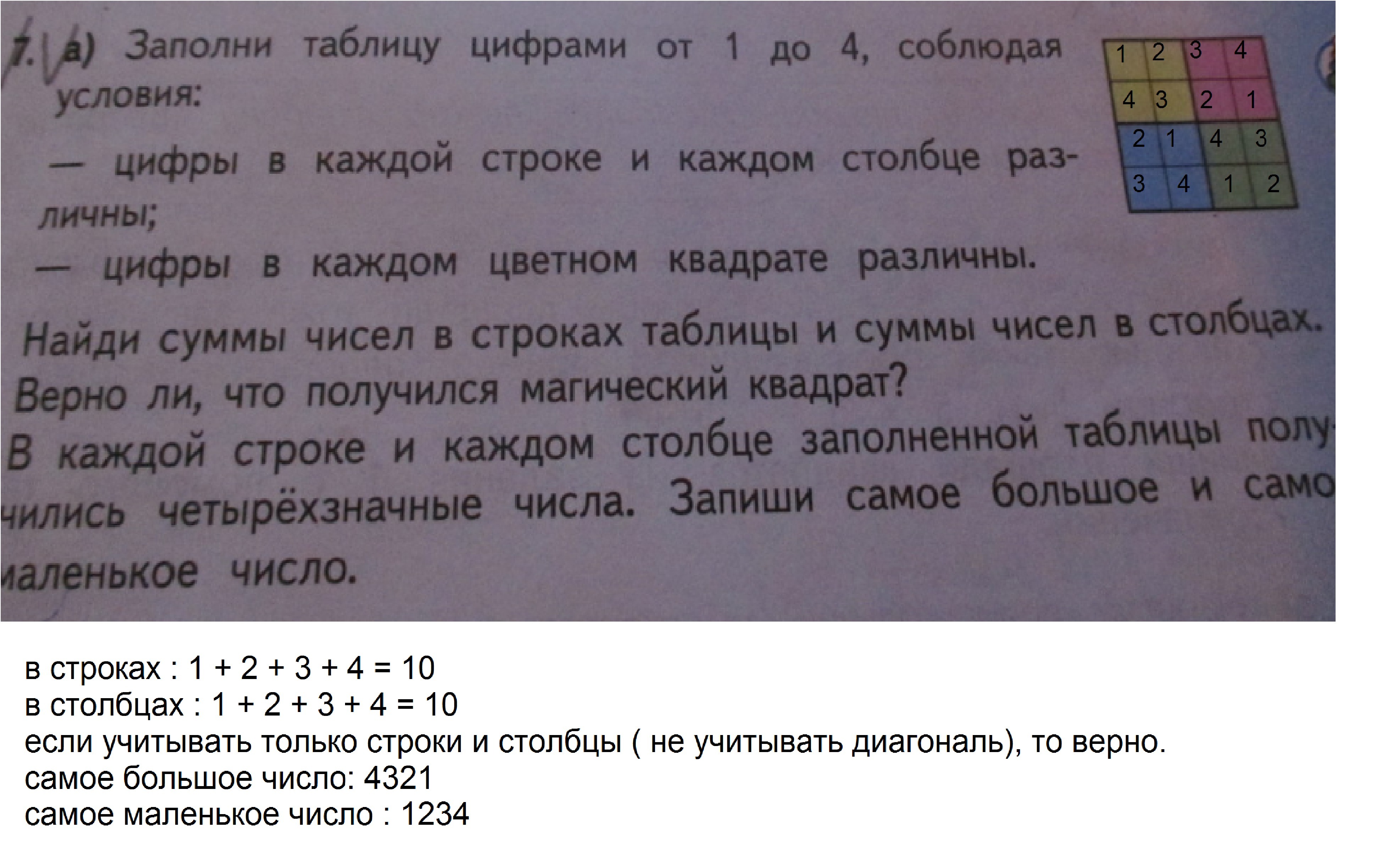 Помогите!Заполни таблицу цифрами от 1 до. 4 ,соблюдая условия:"цифры в каждой строчке и столбце были различны"