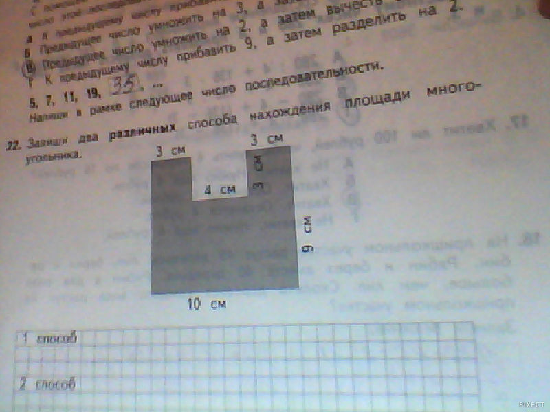2 способ это из площади большого прямоугольника вычесть площадь маленького 10*9-4*3