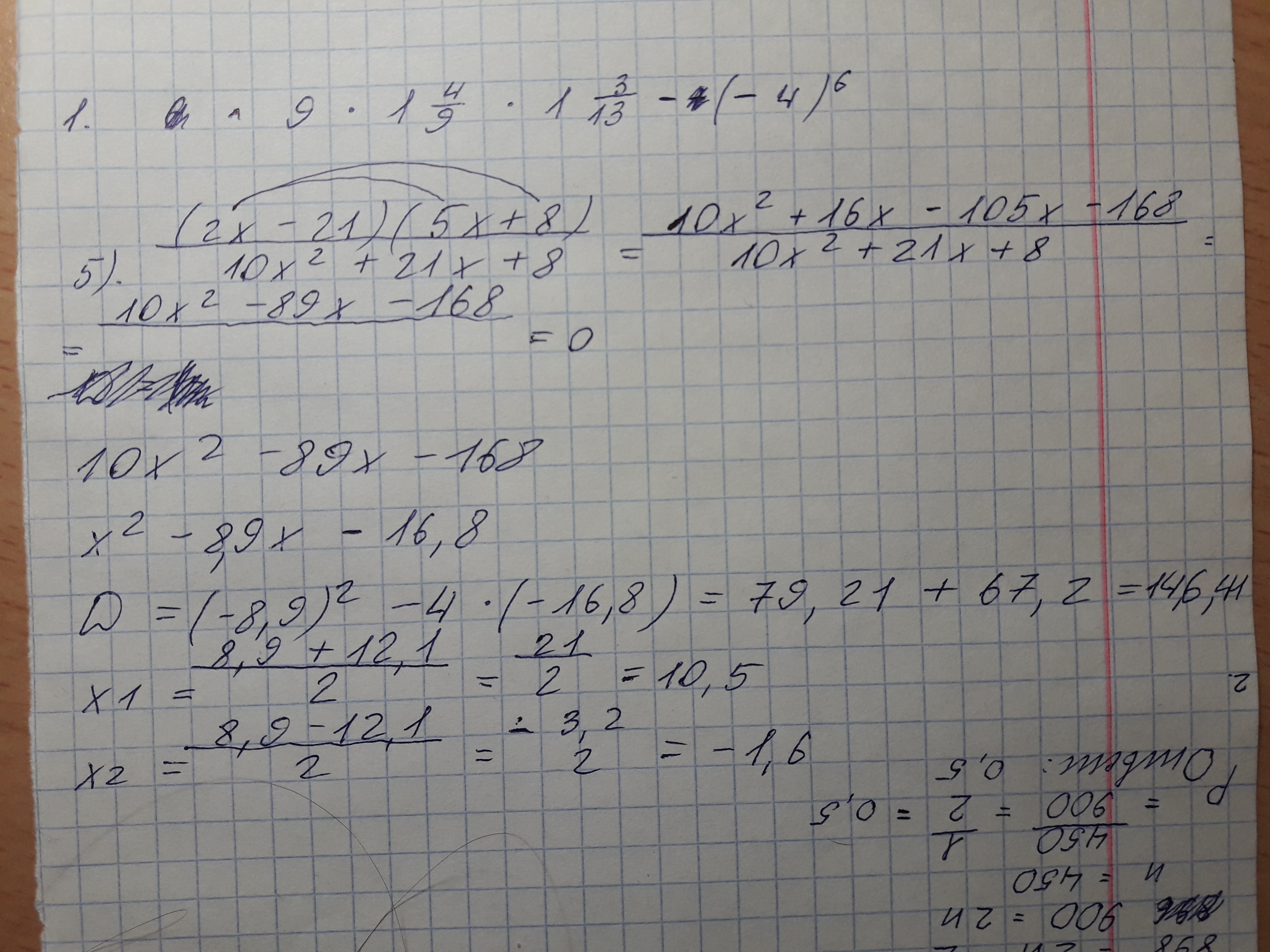 5) (2х-21)(5х+8)/10х^+21х+8=0 /*(10х^+21х+8);