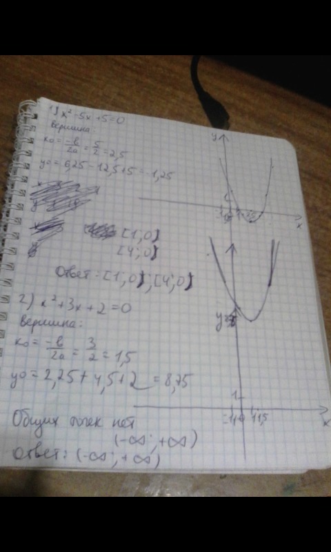 Находишь вершины парабол(в данном случае графики будут именно параболы,так как присутствует x^2),схематично строишь график и находишь точки пересечения с осью ох.