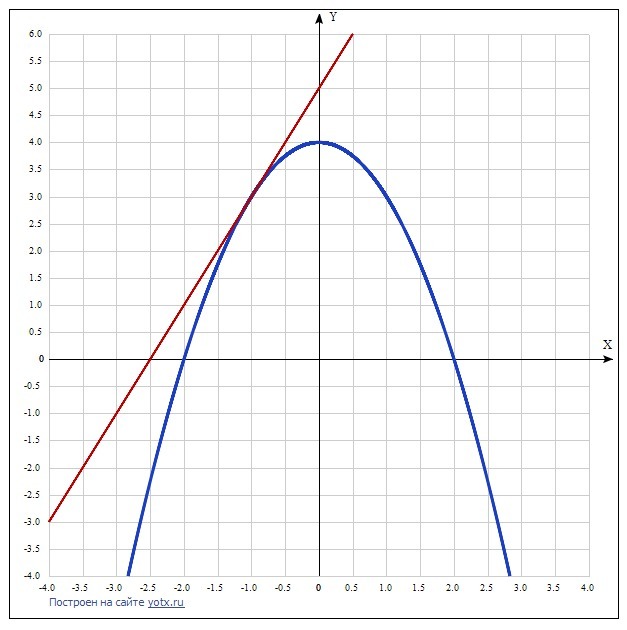 Вычисляем ординату точки касания y₀=-(-1)²+4 = 3.