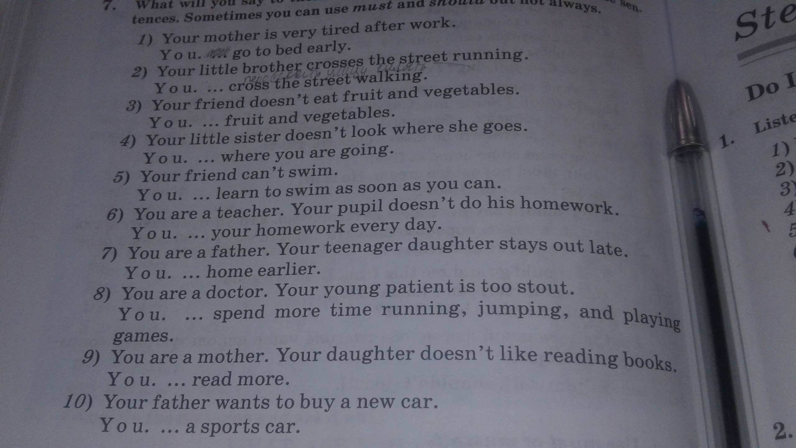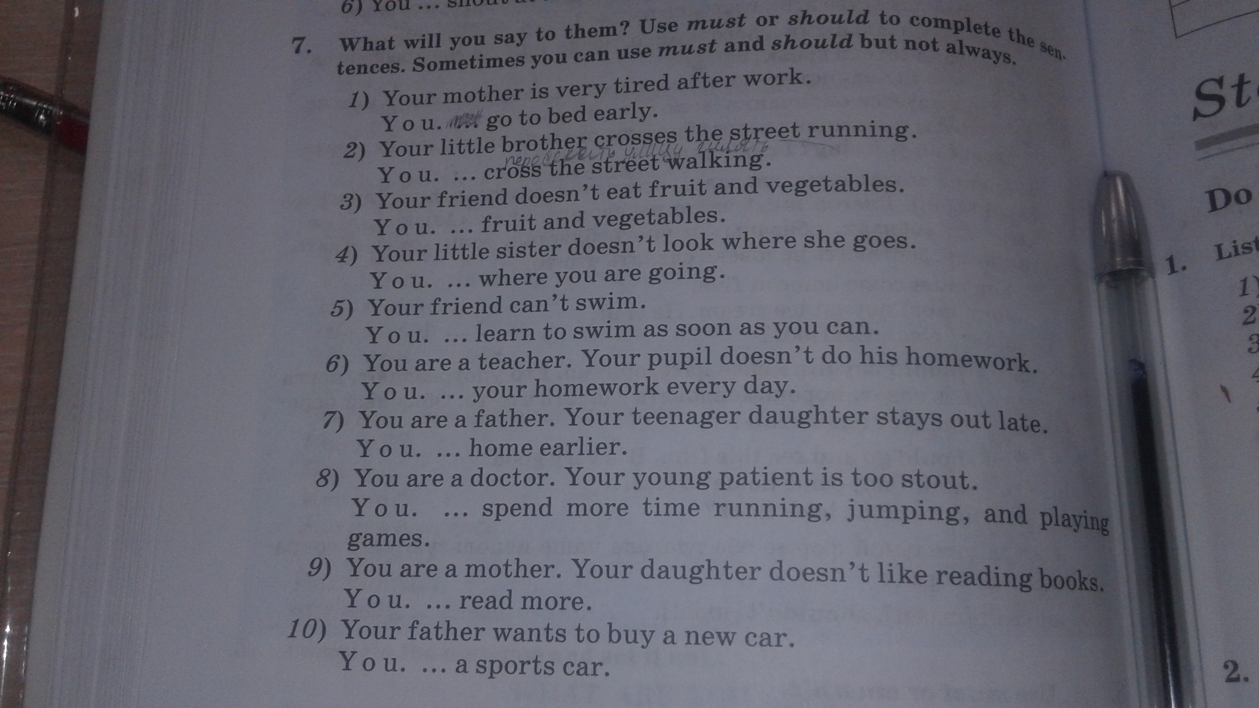 What Will you say to them? Ise must or should to complate the sentences. Sometimes you can use must and shouldbut not always