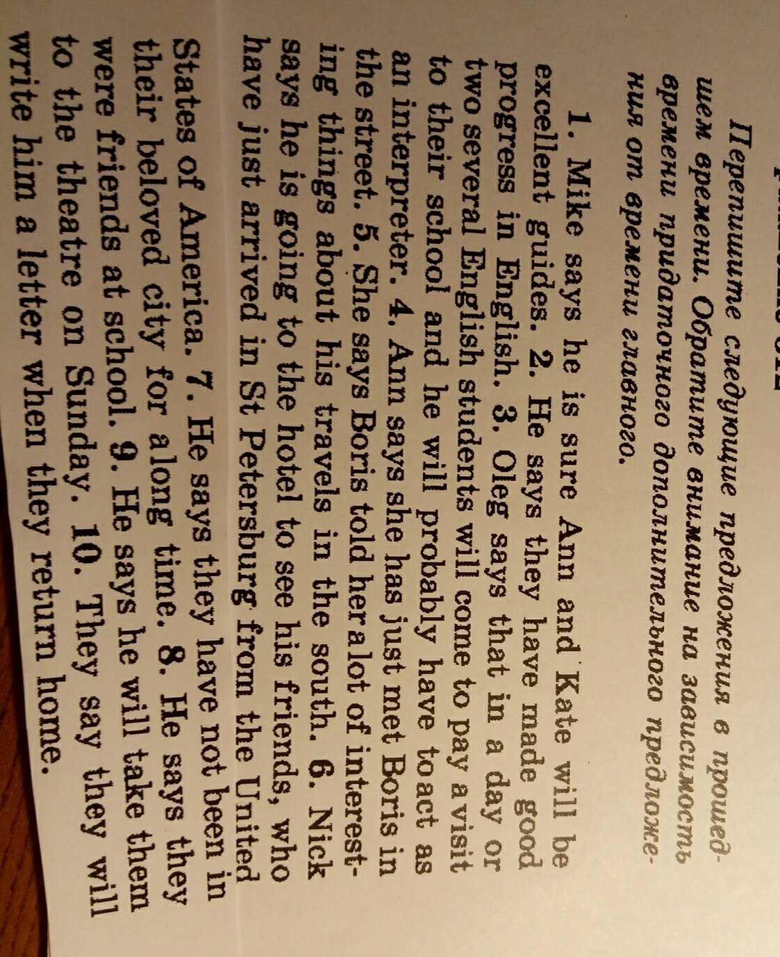 6. Nick said he was going to the hotel to see his friends, who had just arrived in St Petersburg from the United States of America.