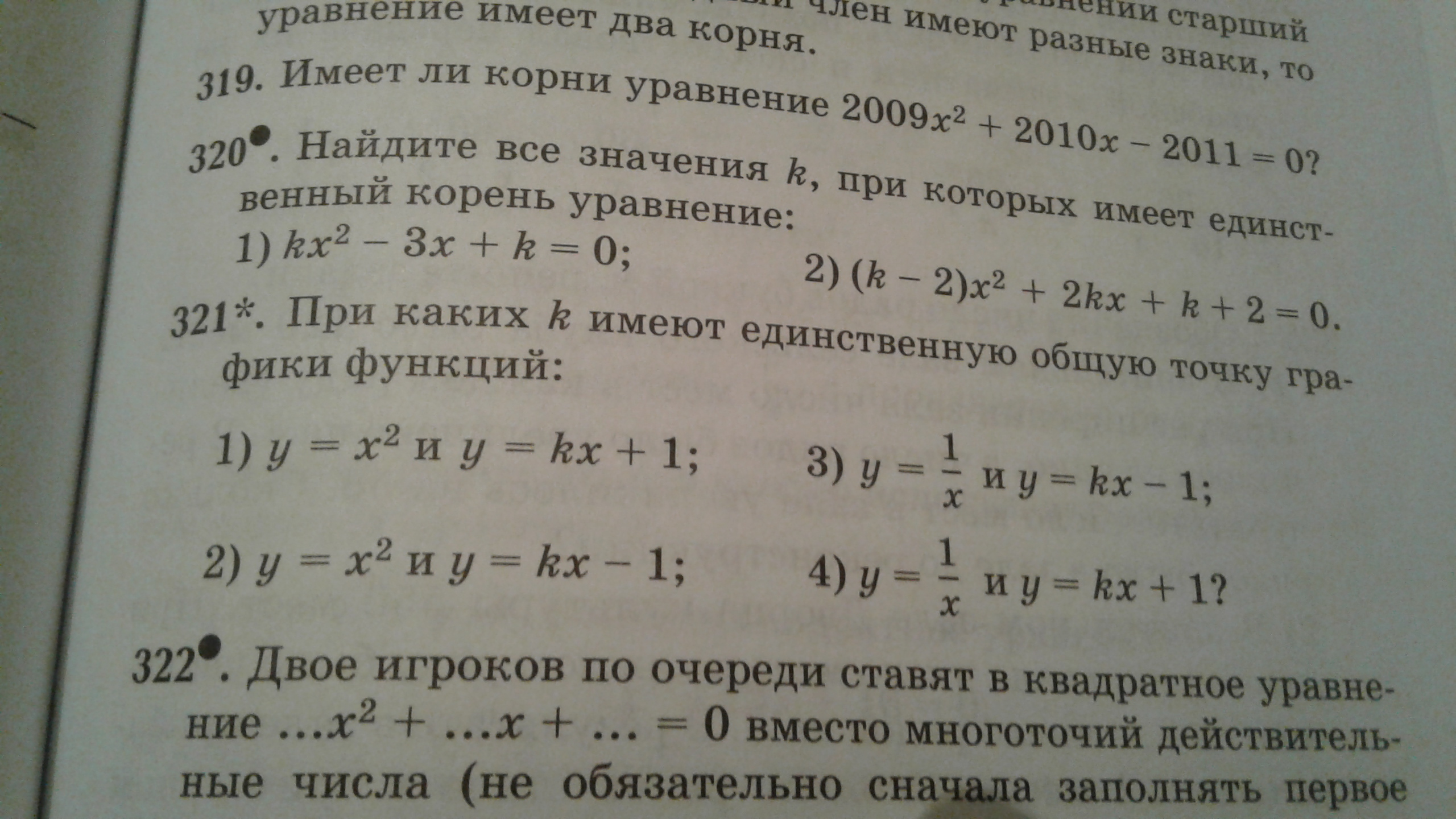 x²-kx-1=0 уравнение имеет один корень ,если дискриминант равен 0