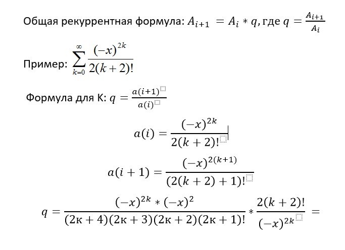 Составить рекуррентную формулу для следующего ряда. Я пробовал решать (рисунок 2), но запутался. Объясните, как составить рекуррентную формулу для данного ряда. Заранее благодарен!