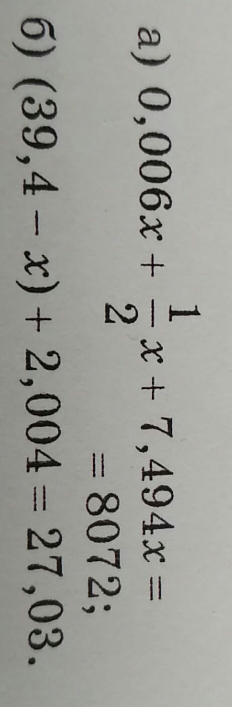 помогите решить уравнение 0,006х+1/2+7,494=8072 и б