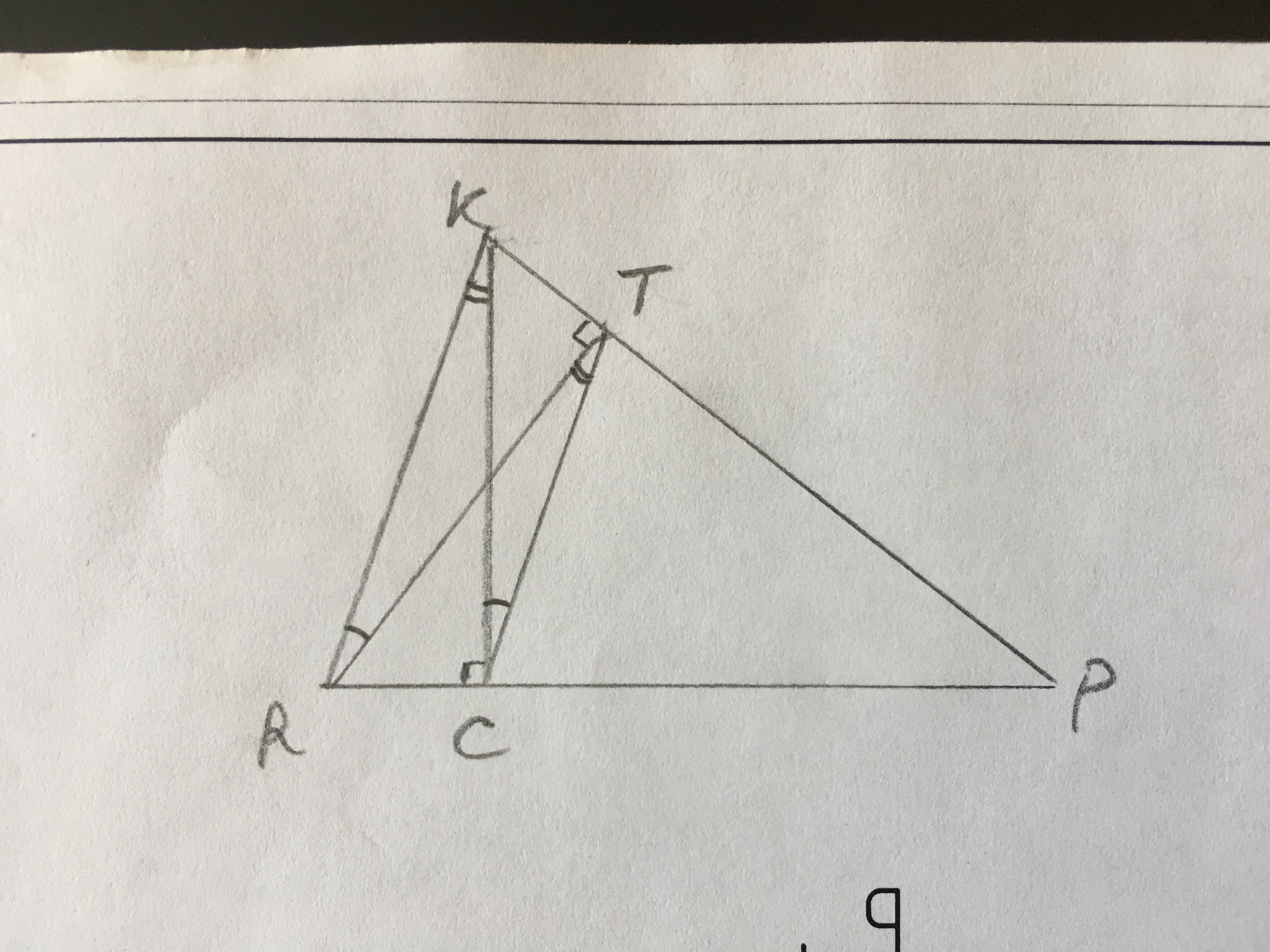 в остроугольном треугольнике RKP провели высоты RT и KC докажите что треугольники KPR и CTP подобны
