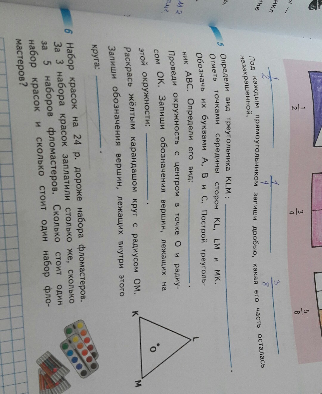 эта задача решается уравнением: пусть х это стоимость фломастеров, тогда стоимость красок будет стоить (х+24). 5 упаковок фломастеров (5х), стоит так же как и 3 упаковки красок (3(х+24)). Cоставим и решим уравнение.