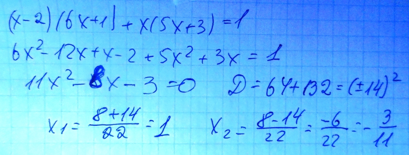х в квадрате(х-2)(6х+1)+х(5х+3)=1