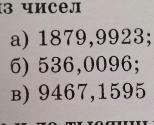 до тысяч а)2,в)9; до десятых а) 1879,9или1880,0 б)536,0 в)9467,2; до тысячных а)1879,992 б)536,009 в)9467,160