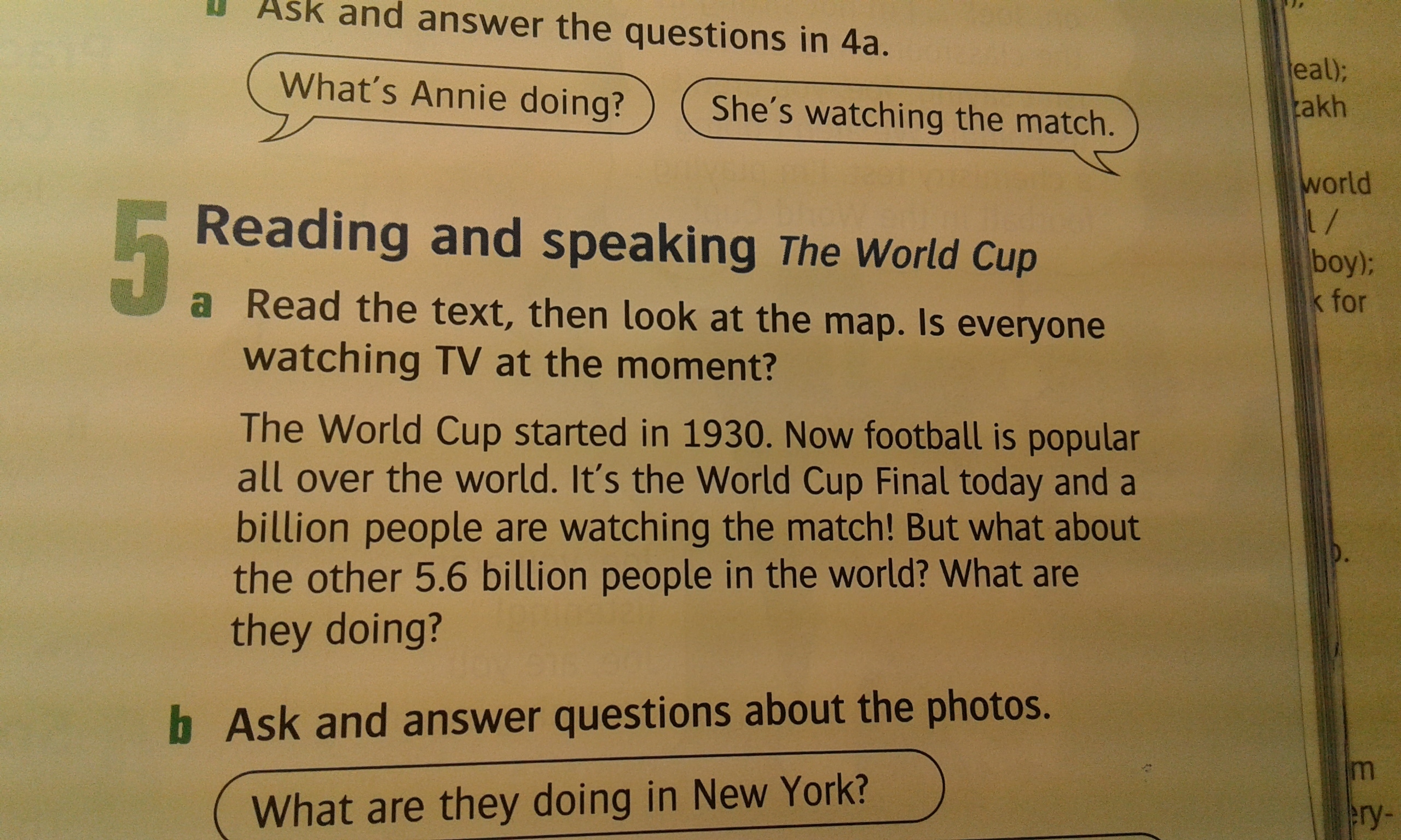 Чемпионат Мира начался в 1930 году. Сейчас футбол популярен во всем мире. Сегодня Финал Чемпионата Мира и его смотрят миллиард людей. Но что остальные 5.6 миллиарда людей? Что они делают?