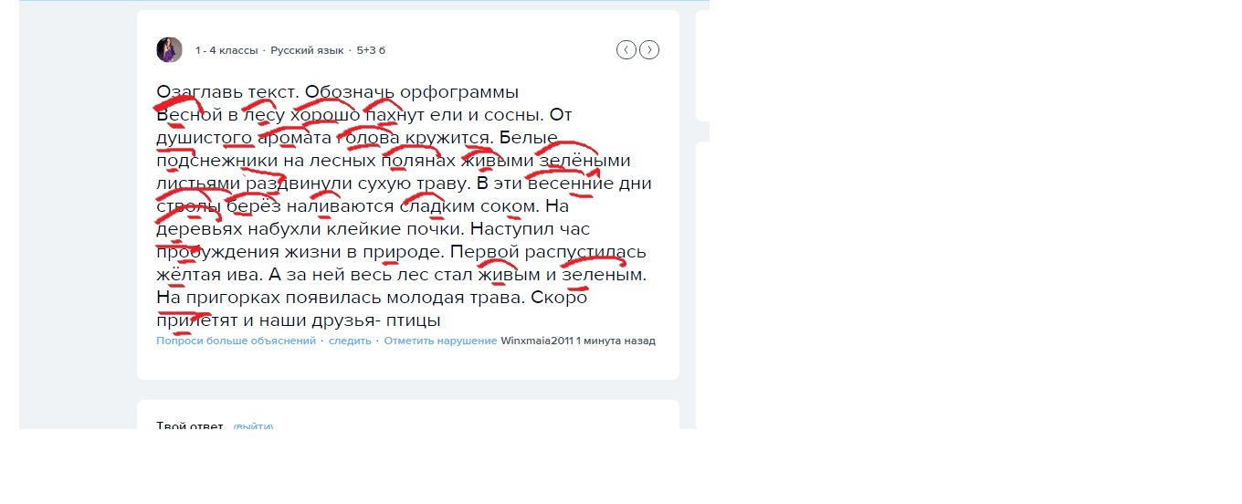 Озаглавь текст. Обозначь орфограммы
