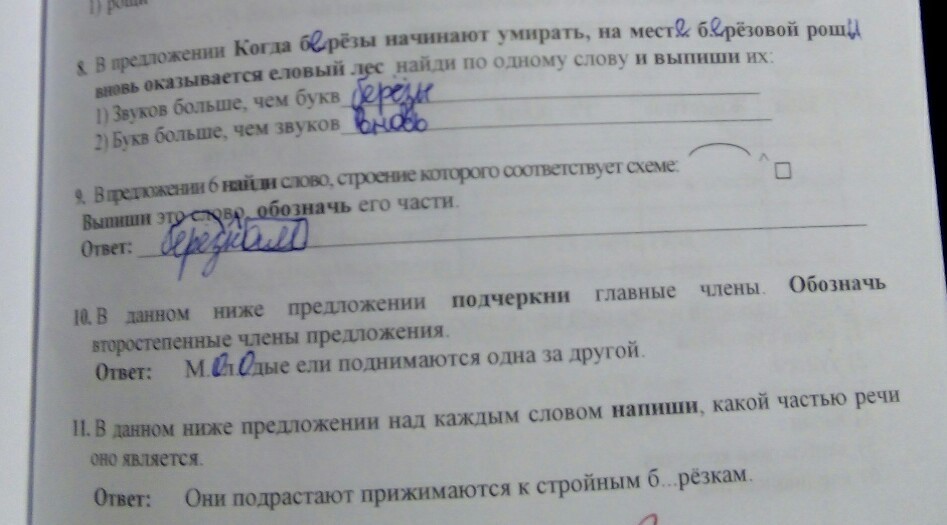 В данном предложении (молодые ели поднимаются одна за другой) подчеркни главные члены. Обозначь второстепенные члены.