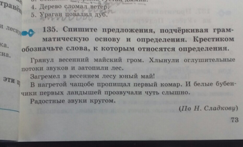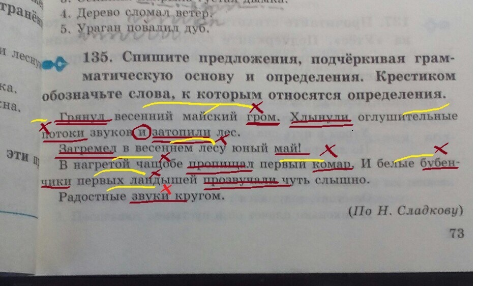 спишите предложения подчёркивая грамматическую основу и определения крестиком обозначьте слова к которым относятся определения