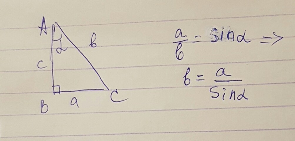 для прямоугольного треугольника ABC с прямым углом B выразите b через a и угол альфа