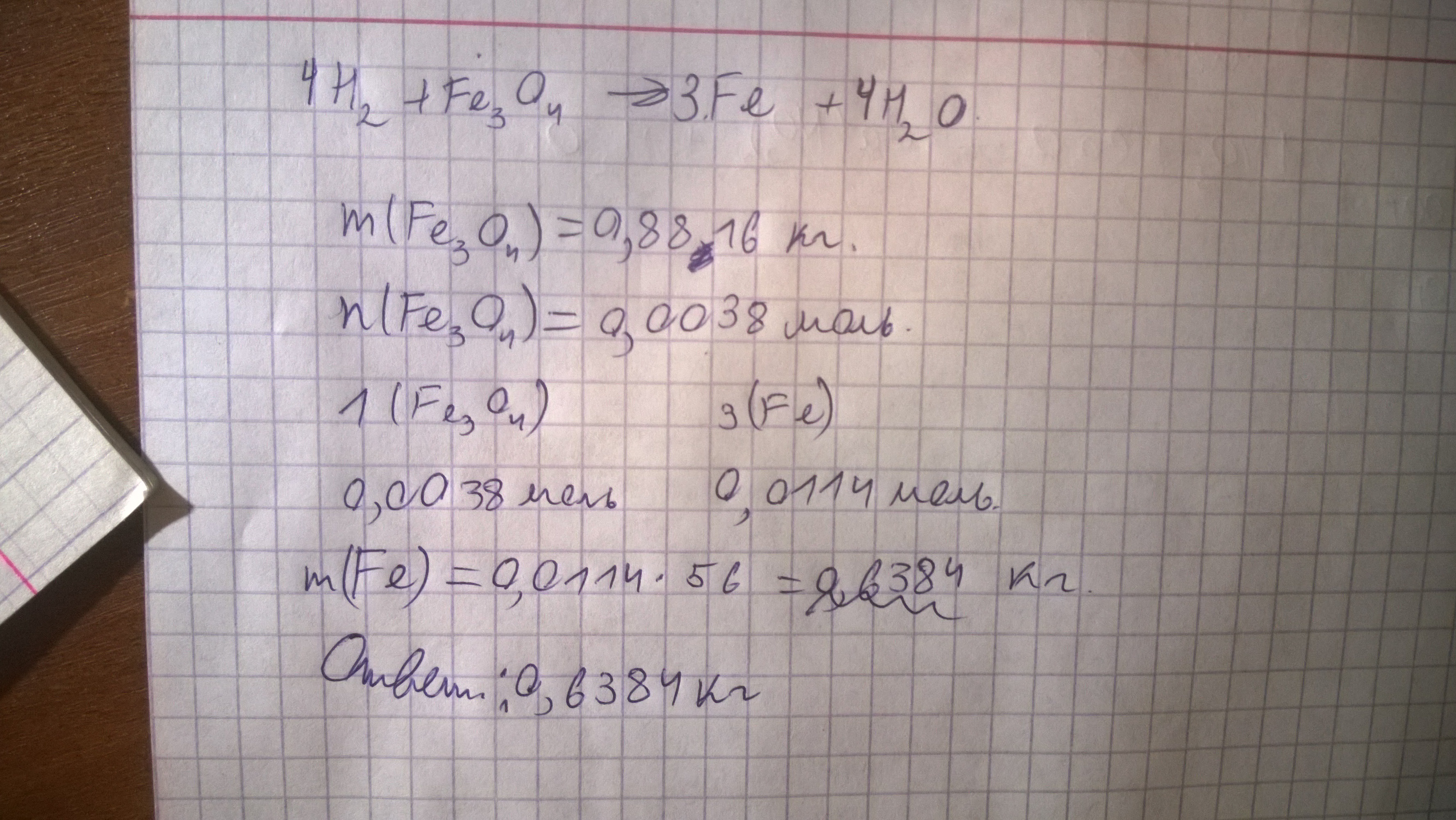 Как то так. Ответ 0,6384 кг