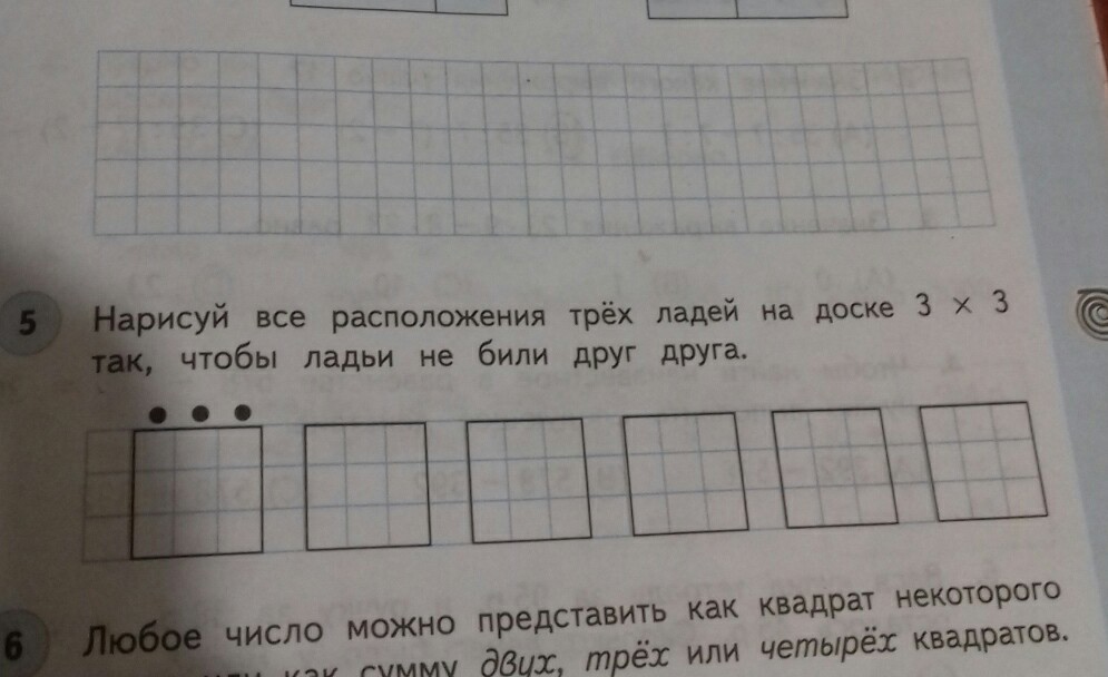нарисуй все расположения трех ладей на доске 3 на 3 так чтобы был один не были любили друг друга