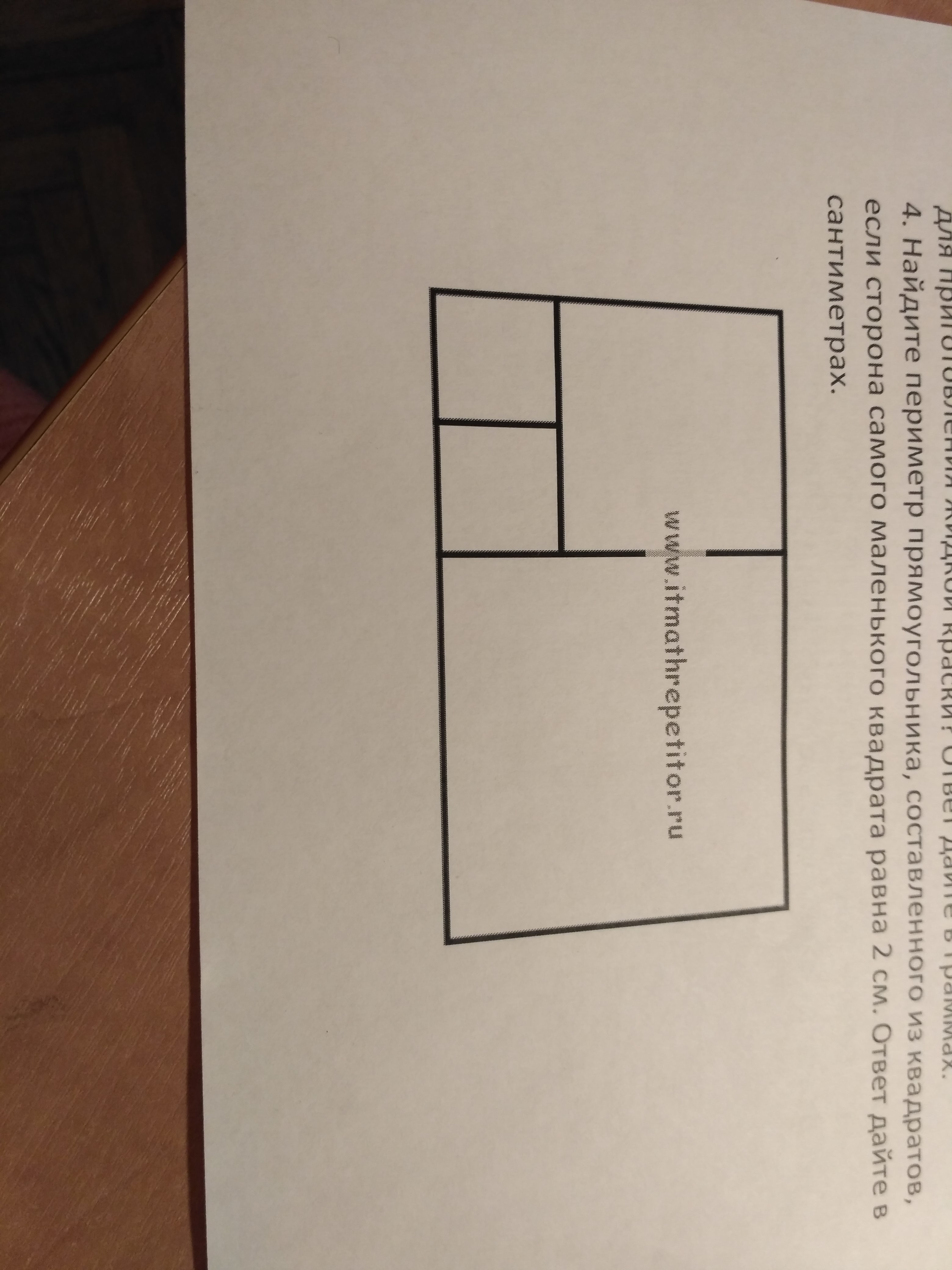 Найдите периметр прямоугольника, составленного из квадратов, если сторона самого маленького квадрата 2 см.