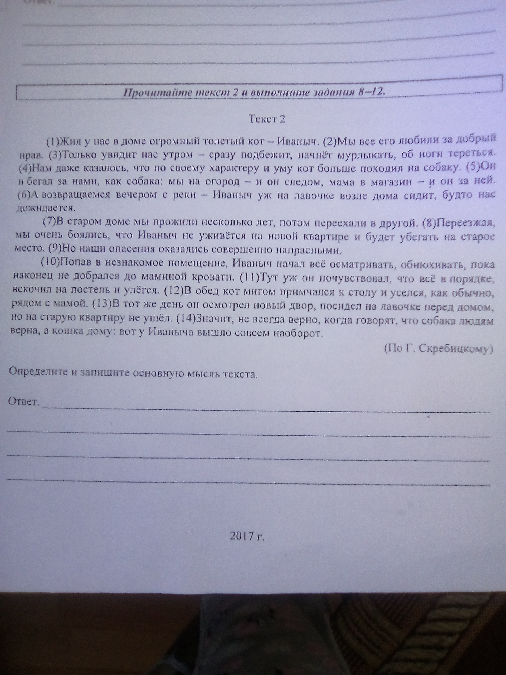 Главная мысль текста в том, что кот был верен людям и ему не важно было в каком месте находиться,главное что он был с родными людьми