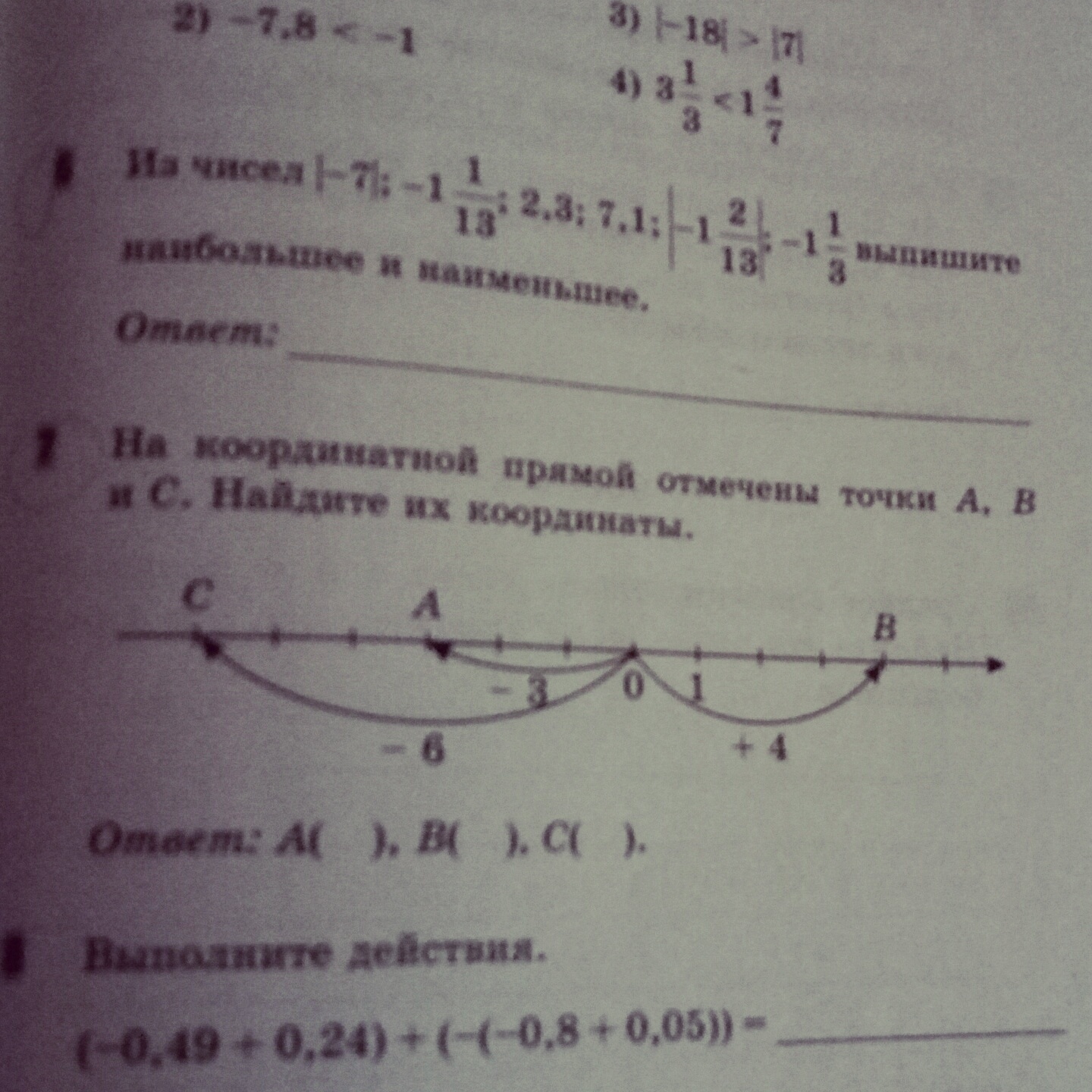 На координатной прямой отмечены точки A, B, и C найдите их координаты