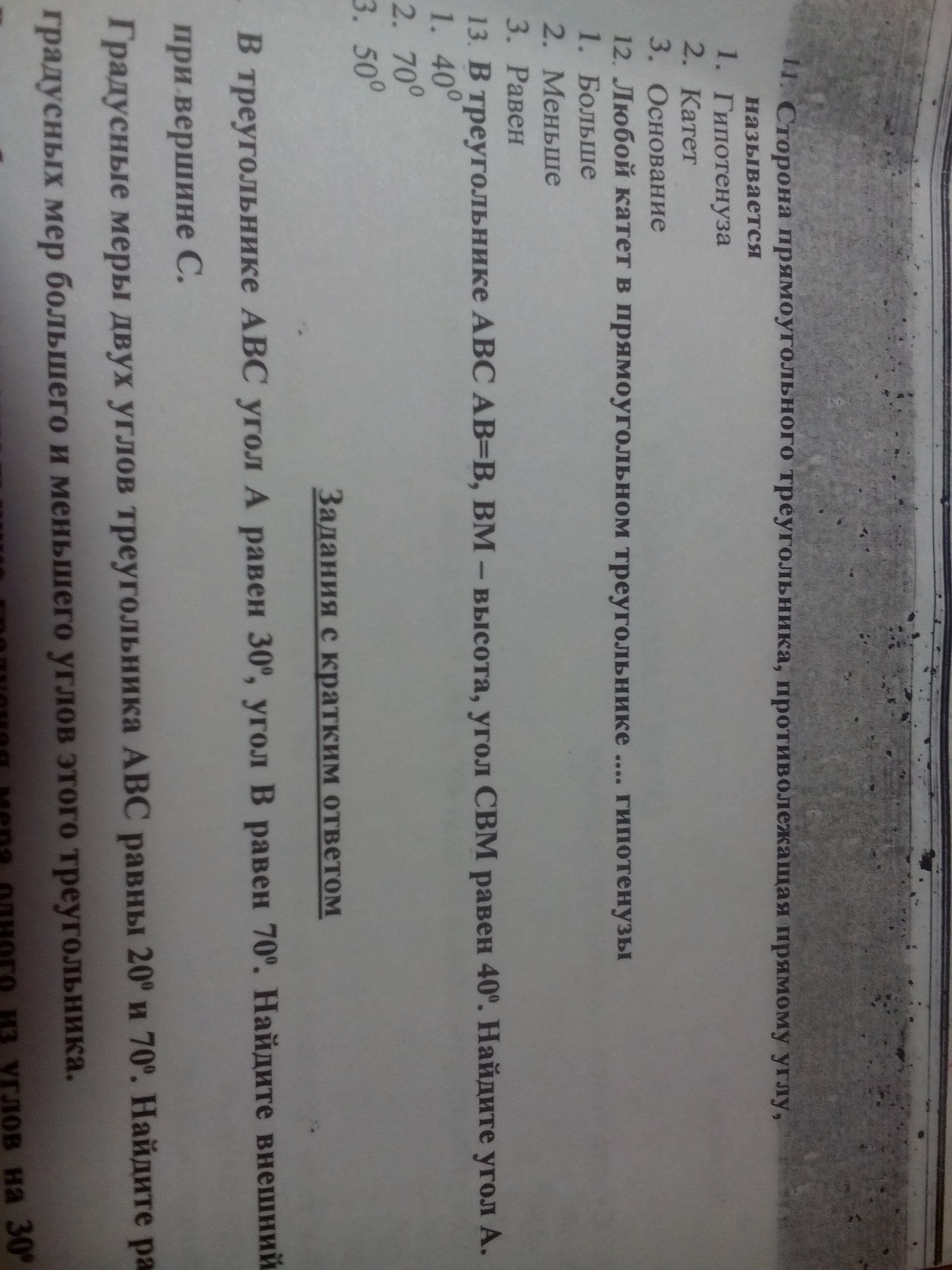 в обеих задачах 3 ответ, в первом случае 180-90-40=50, во втором случае 180 (развернутый угол)-50=130