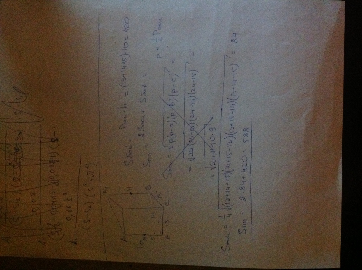 В прямой призме ABCA1B1C1 AC=13 AB=14 BC=15 AA1=10.Точки М и Н –середины ребер АА1 и ВВ1 соответственно 1)Найдите площадь полной поверхность призмы