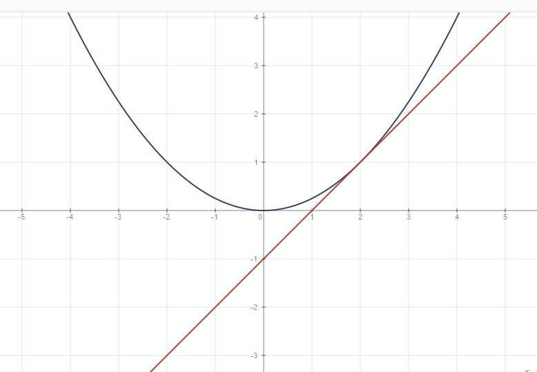зднсь прямая - касательная к параболе и общая точка (касания) х=2 у=1