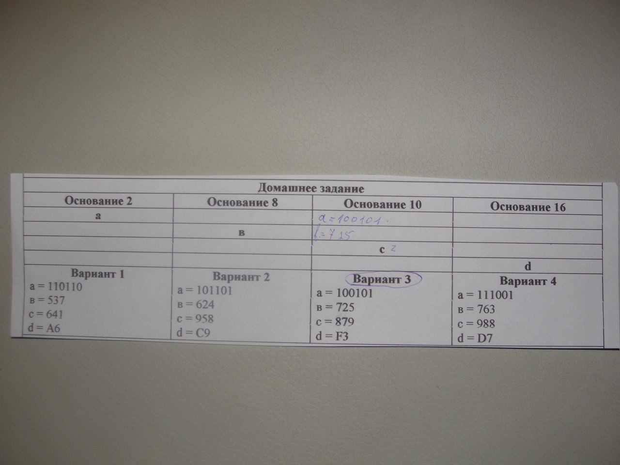 помогите у меня 3-й вариант нужно из 10-чной системы исчесления переводить во все остальные.по таблице.