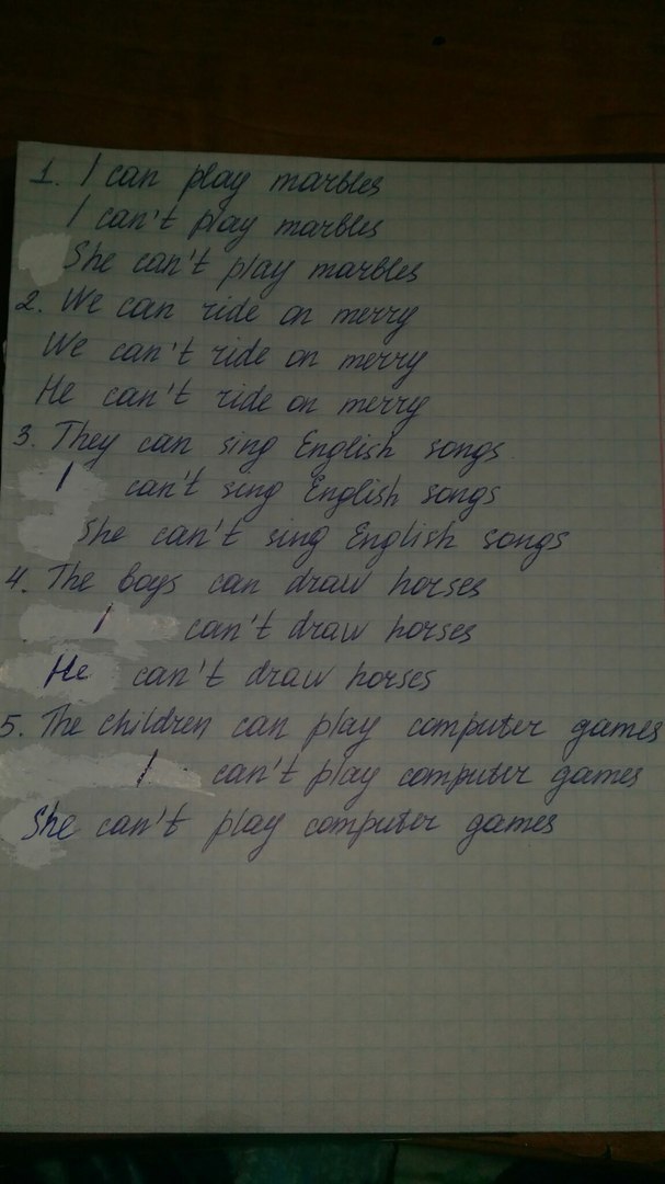 2. I can't ride on merry-go-round. She/hr can't ride on merry-go-round.