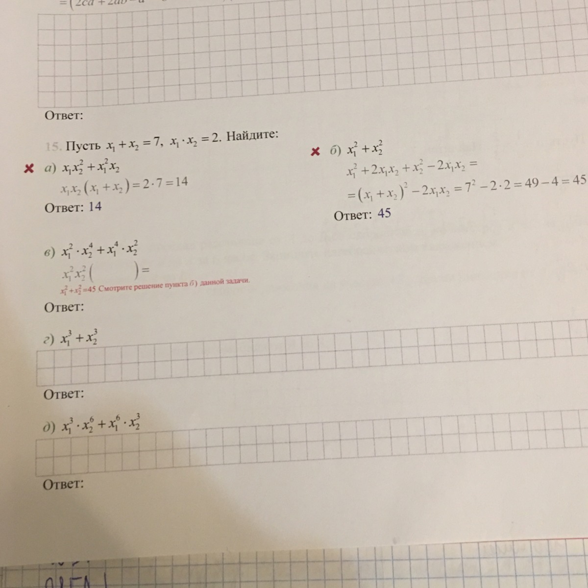 2) Ниже - скриншот решений. Здесь, надеюсь, всё понятно: в обоих пунктах понадобилось решение из пункта Б, в последнем пункте я использовала формулу суммы кубов.