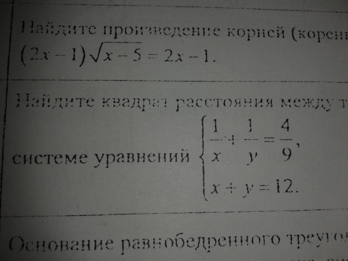 найдите квадрат расстояния между точками, координаты кооторых удовлетворяют системе уравнений во влажении.
