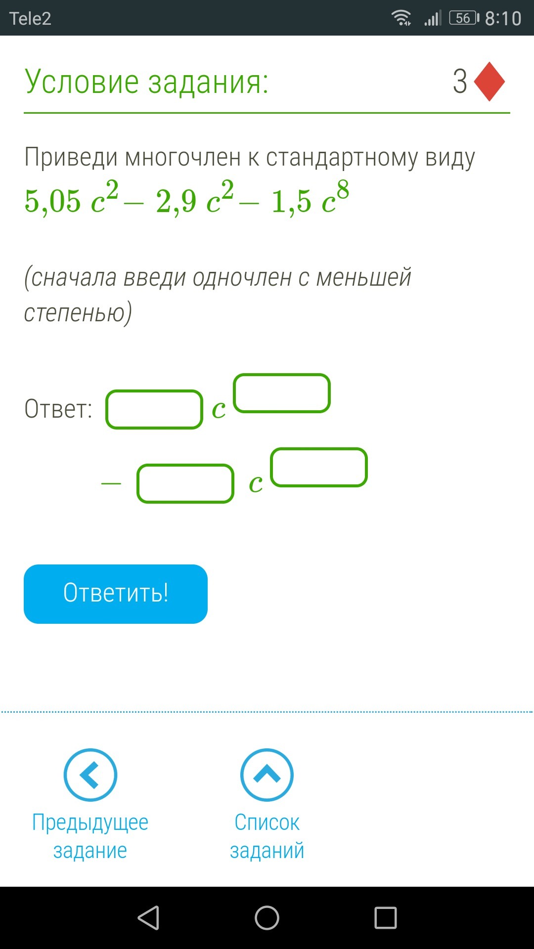 2) В форму записываем сначала полученное в действии 1, потом - оставшийся член