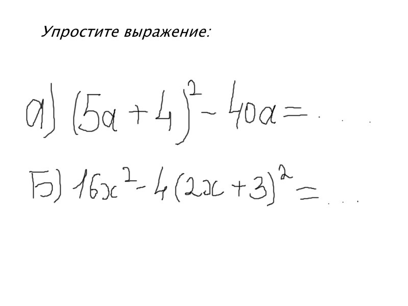 (5a+4)^2-40a=25a^2+40a+16-40a=25a^2+16\\\16x^2-4(2x+3)^2=16x^2-4(4x^2+12x+9)=\\=16x^2-16x^2-48x-36=-12(4x+3)