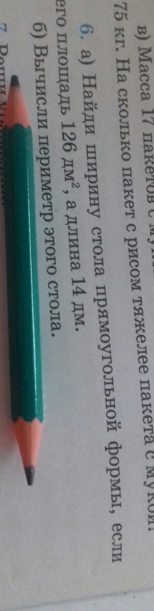 по матем найди ширину стола прямоугольной формы, если его площадь 126 дм квадратных, а длина 14 дм б) вычисли периметр этого стола