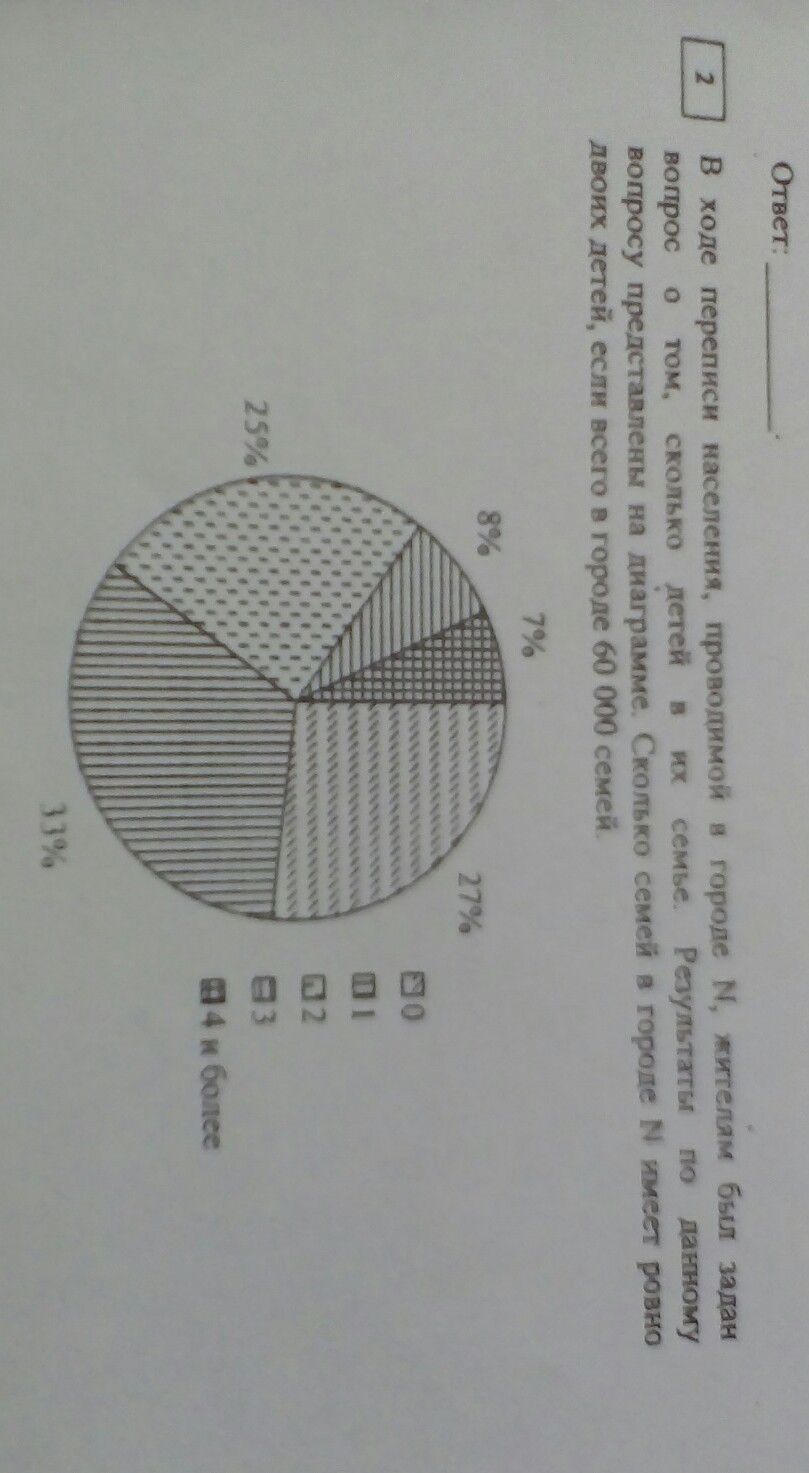 диаграмме. Сколько семей в городе N имеет ровно двоих детей, если всего в городе 60 000 семей.