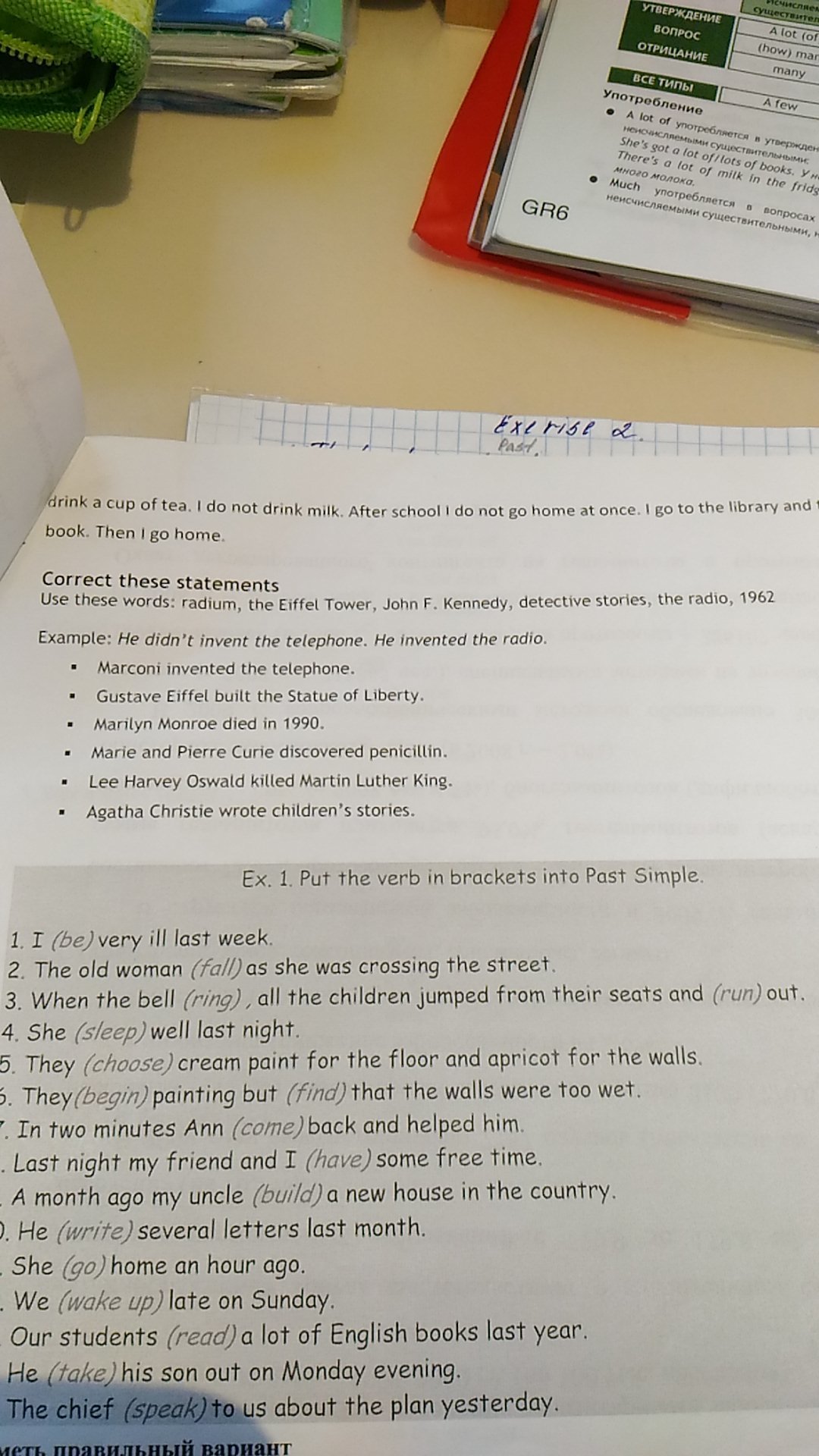1 was 2 fell 3 rang ran 4 slept 5 chose 6 began, found 7 came 8 had 9 built 10 wrote 11 went 12 woke up 13 read 14 took 15 spoke