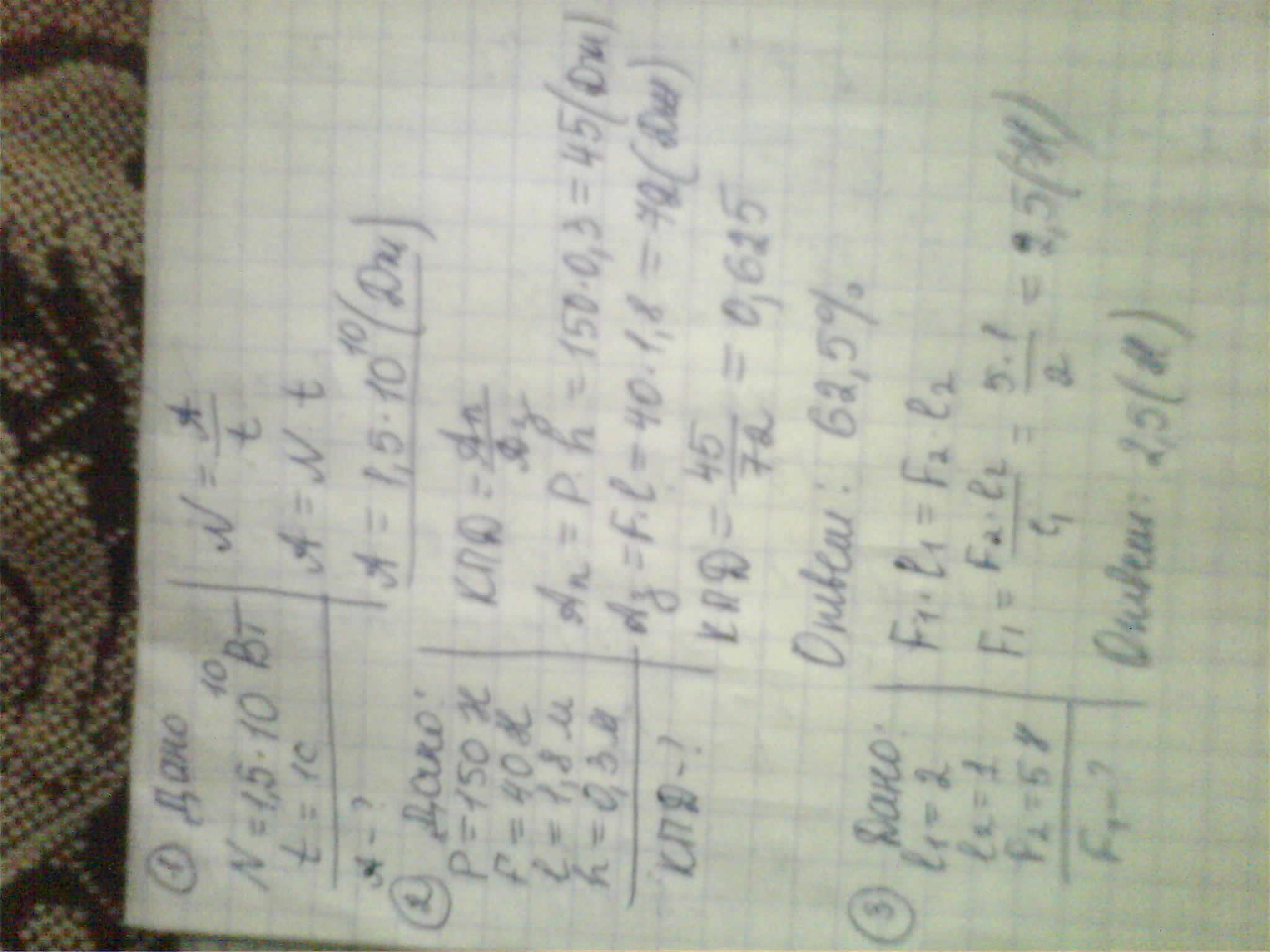 2.При равномерном перемещении груза весом 150 Н по наклонной плоскости динамометр, привязанный к грузу, показывал силу, равную 40 Н. Определите КПД наклонной плоскости, если ее длина 1,8 м, а высота 0,3 м.