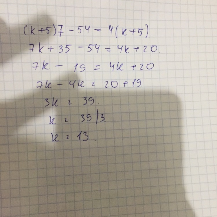 (к + 5 ) * 7 - 54 = (к + 5) * 4