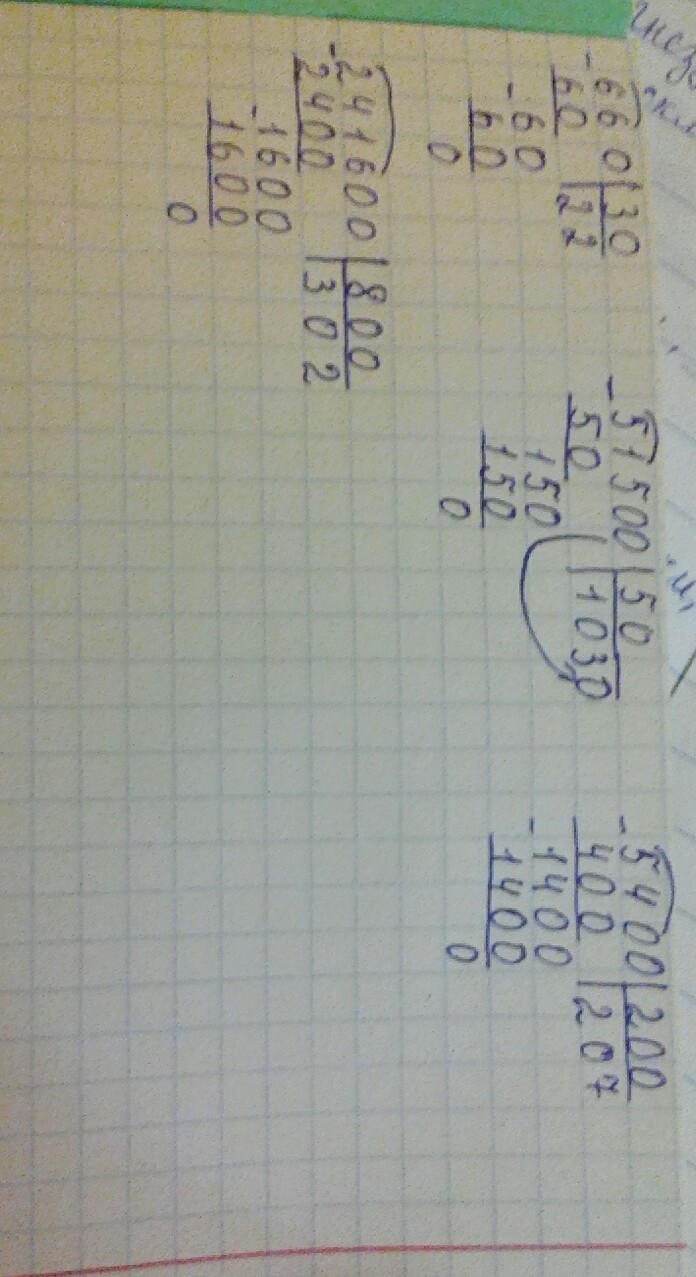 Ребята помогите плиз. ПРИМЕРЫ надо решить в СТОЛБИК. Вот 660:30,51500:50,5400:200,241600:800. ПОЖАЛУЙСТА!!!