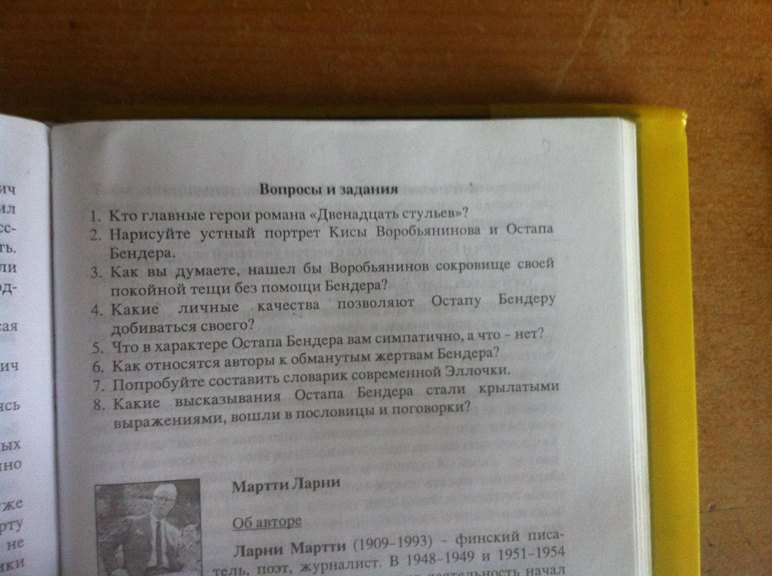 Главные и эпизодические герои: Остап Бендер (великий комбинатор, технический директор концессии) , Ипполит Матвеевич (бывший предводитель дворянства; работник ЗАГСа в уездном городе N; гигант мысли, отец русской демократии) Воробьянинов, Отец Фёдор Востриков (священник, главный конкурент) , Безенчук (гробовых дел мастер) , Александр Яковлевич («Альхен» ) (завхоз 2-го дома Старсобеса, застенчивый ворюга) , Варфоломей Коробейников (зав. архивом, бывший чиновник канцелярии градоначальства, ныне работник конторского труда) , Мадам Грицацуева (вдова инвалида империалистической войны, жена Остапа Бендера) , Виктор Михайлович Полесов, Елена Станиславовна Боур, Кислярский, Дядьев, Максим Петрович Чарушников, Никеша и Владя, Лиза и Коля Калачовы, Эллочка-людоедка, Авессалом Владимирович Изнуренков, Никифор Ляпис-Трубецкой, Инженер Брунс, Монтёр Мечников.