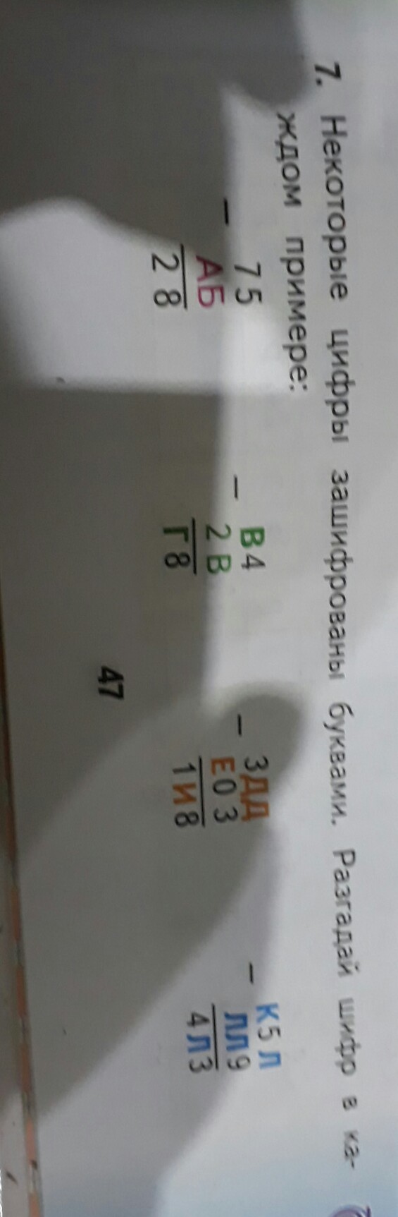 некоторые цыфры зашифрованы буквами. разгадай шифр в каждом примере